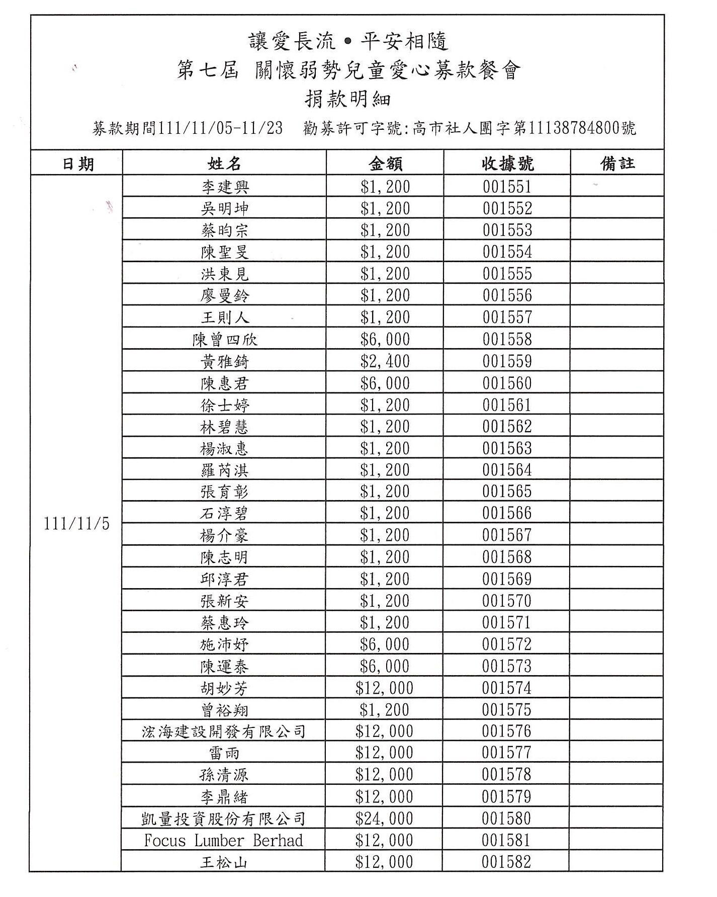 111年度「讓愛長流 平安相隨」第七屆關懷弱勢兒童愛心募款餐會