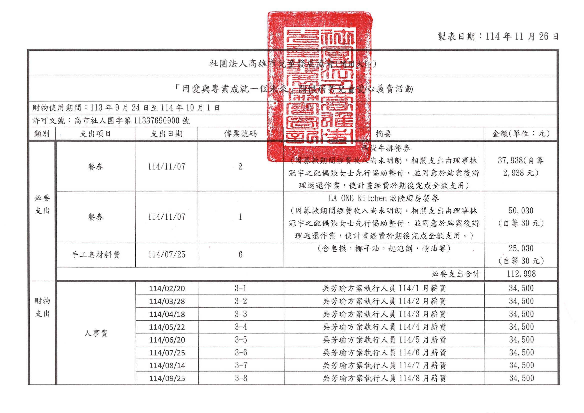 勸募核准文號:高市社人團字第11337690900號