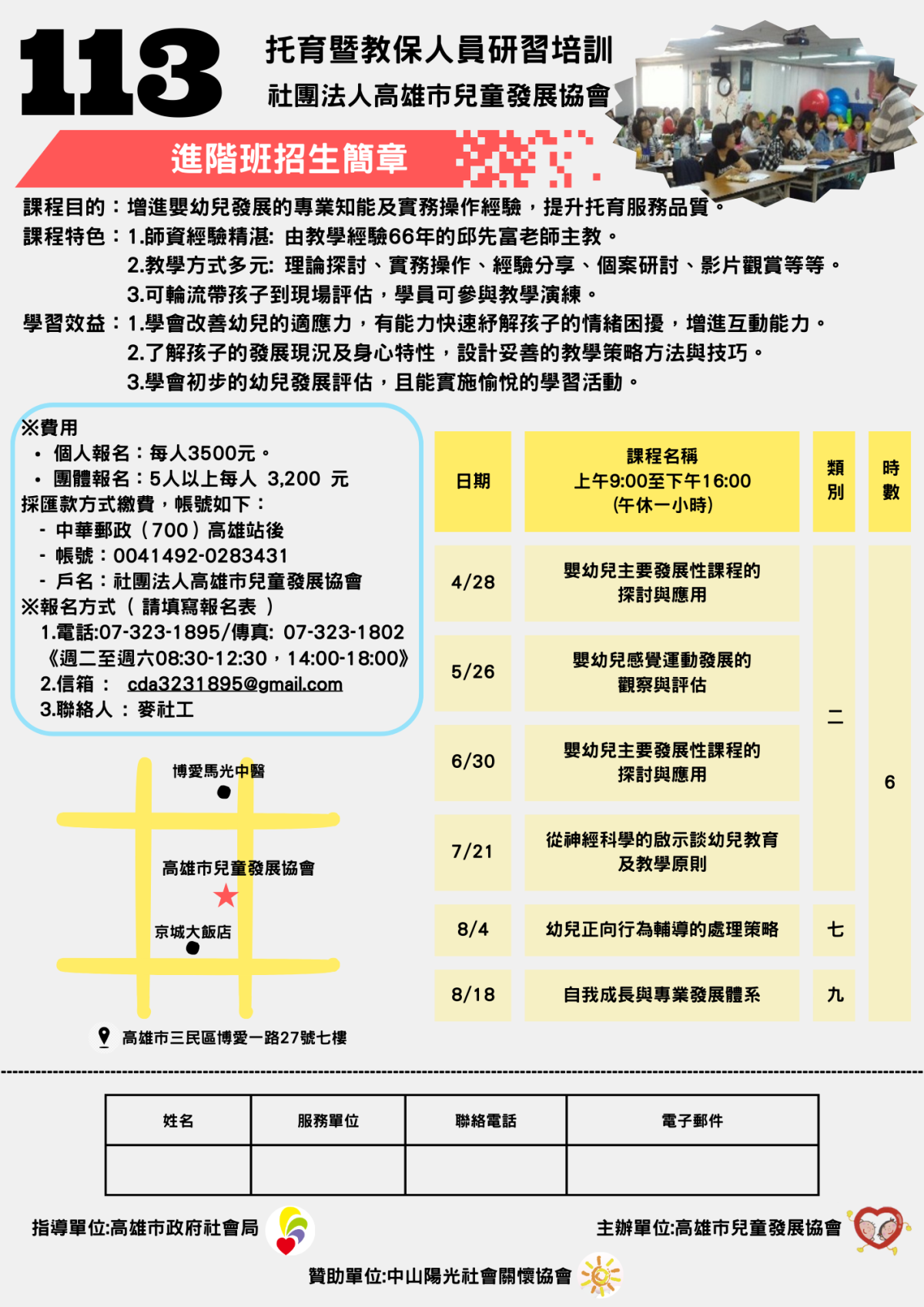 一、教師經驗豐富:由教師資歷65年,早療教學經驗30年的邱先富老師擔任。