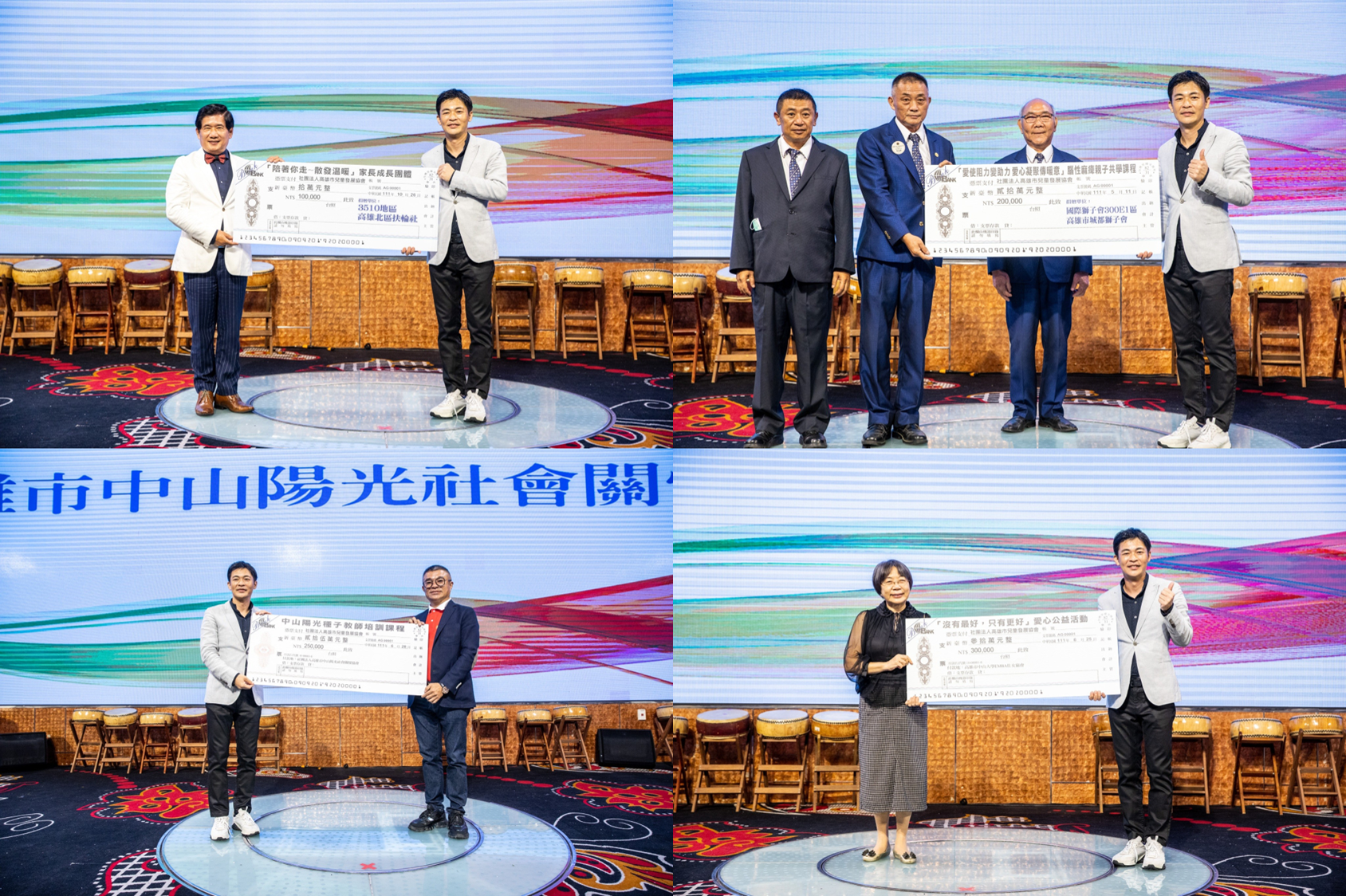 鍾榮和說,感謝高雄市高雄市北區扶輪社、高雄市城都獅子會、中山陽光社會關懷協會、中山大學EMBA仕女協會及許多善心團體公司行號熱情參與踴躍捐款。